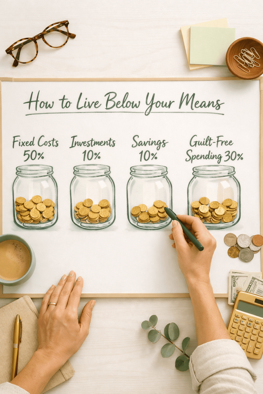 Learning how to live below your means doesn’t require perfection or a complete lifestyle overhaul. It requires a system and a few small decisions made consistently.