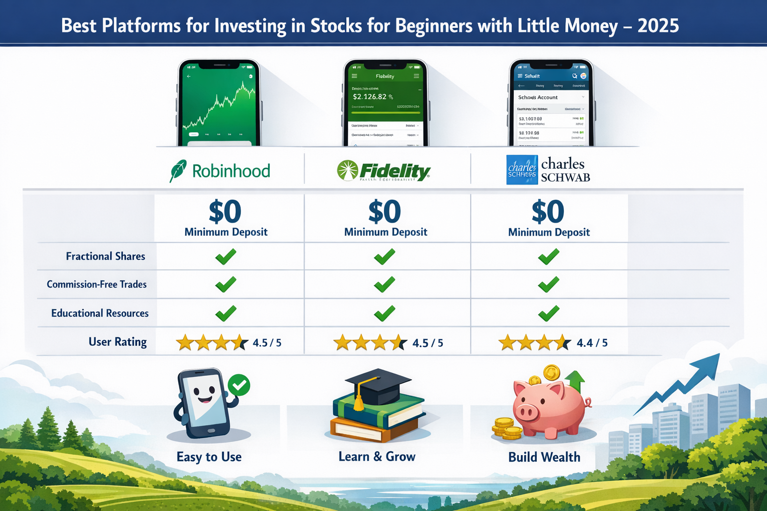 I recommend starting with Robinhood if simplicity is your priority, or Fidelity if you want more educational support and research tools. Both are excellent for investing in stocks for beginners with little money.