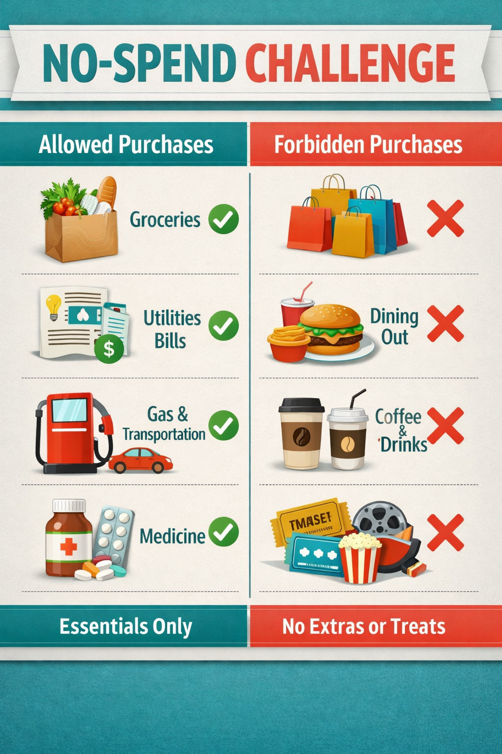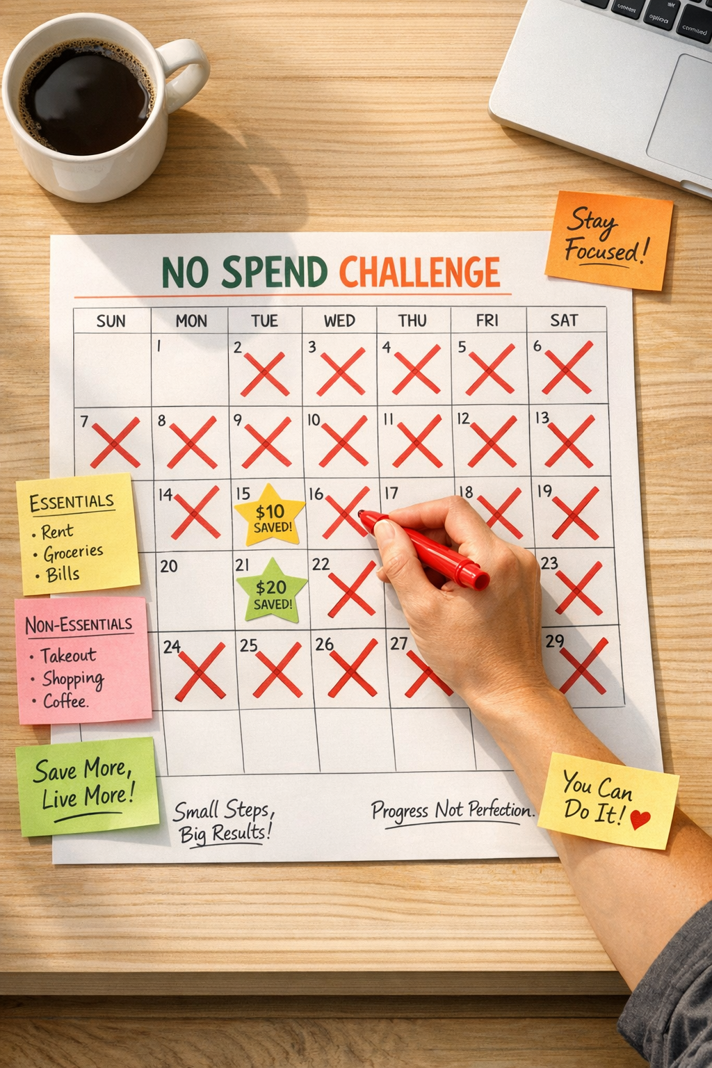 Common mistake: Starting a no-spend challenge without defining your essential categories first leads to mid-month debates with yourself about whether something “counts.” Write your rules down before day one.
